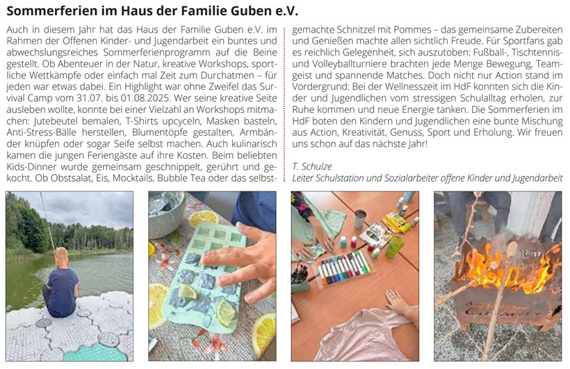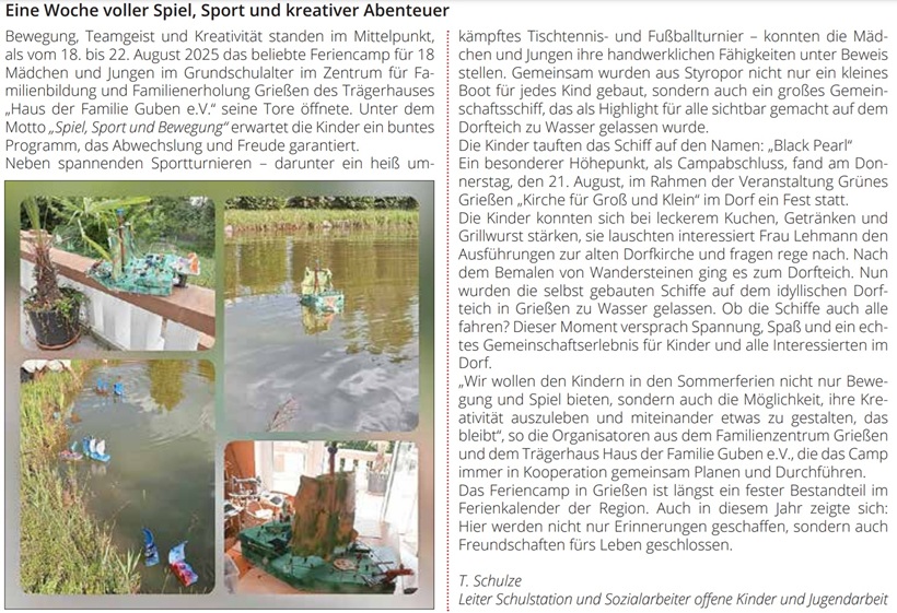 Mit viel Vorfreude starteten die Schülerinnen und Schüler der 1. Klasse der Grundschule Nordstadt aus Forst in ihren bunten Schuljahresabschluss – stilecht mit einem eigens gecharterten Bus in das Familienzentrum in Grießen, dessen Träger das Haus der Familie Guben e.V. ist. Am Ziel angekommen, erwartete die Kinder ein erlebnisreicher Tag voller Spaß und Abwechslung.
